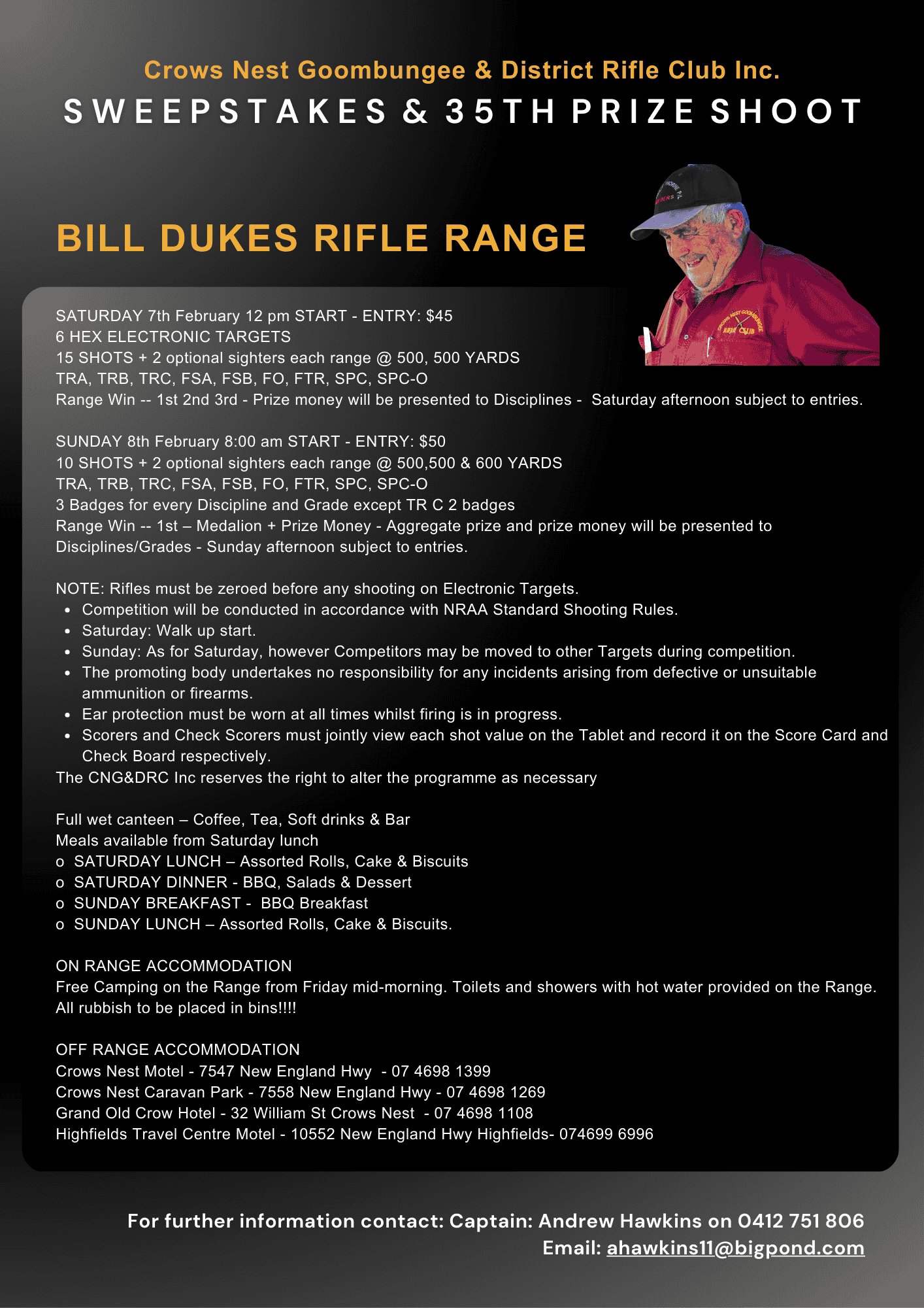 • More information: : Sweepstakes: $45 & Prize Shoot: $50